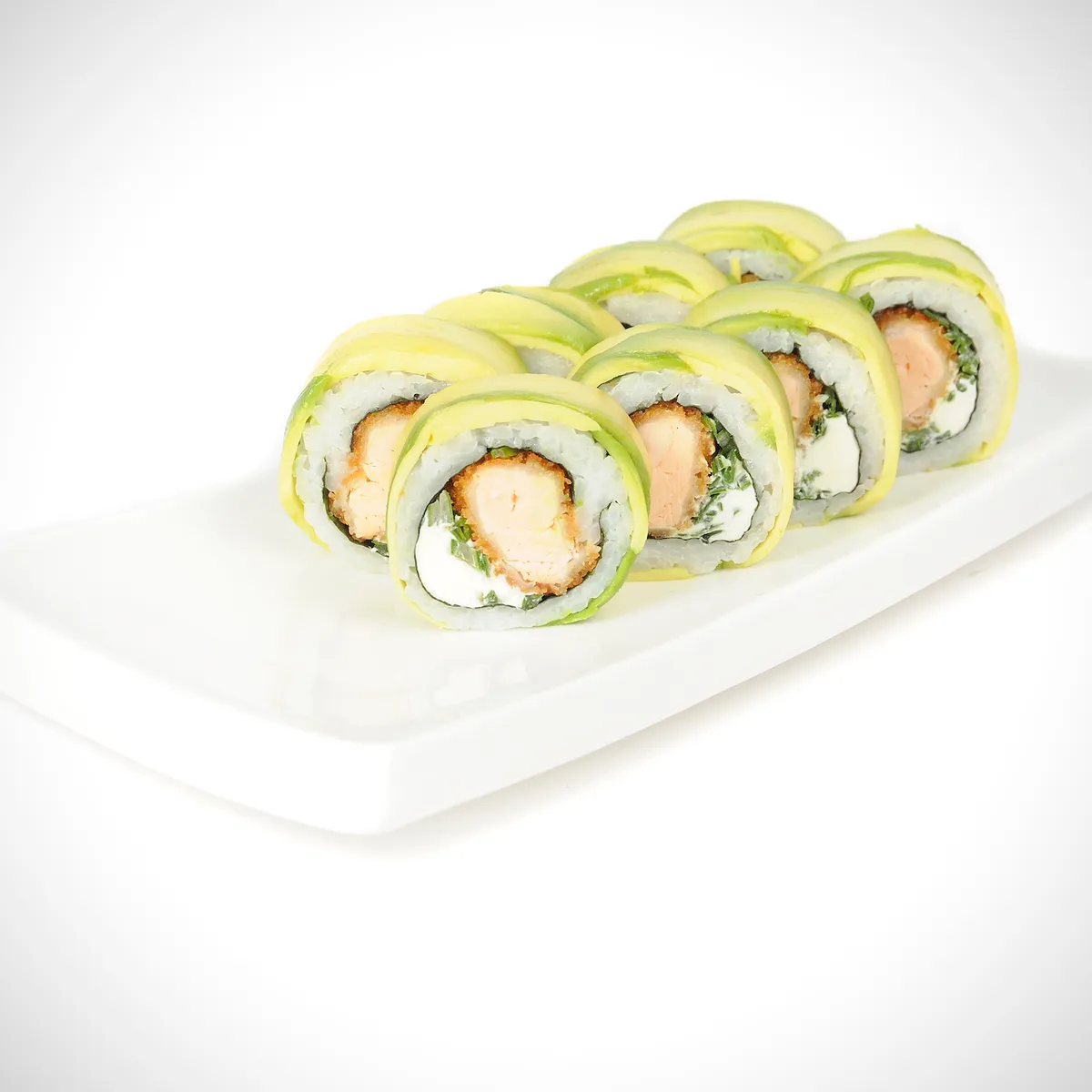10 piezas de Camarón, salmón, queso crema, cebollín envuelto en panko
